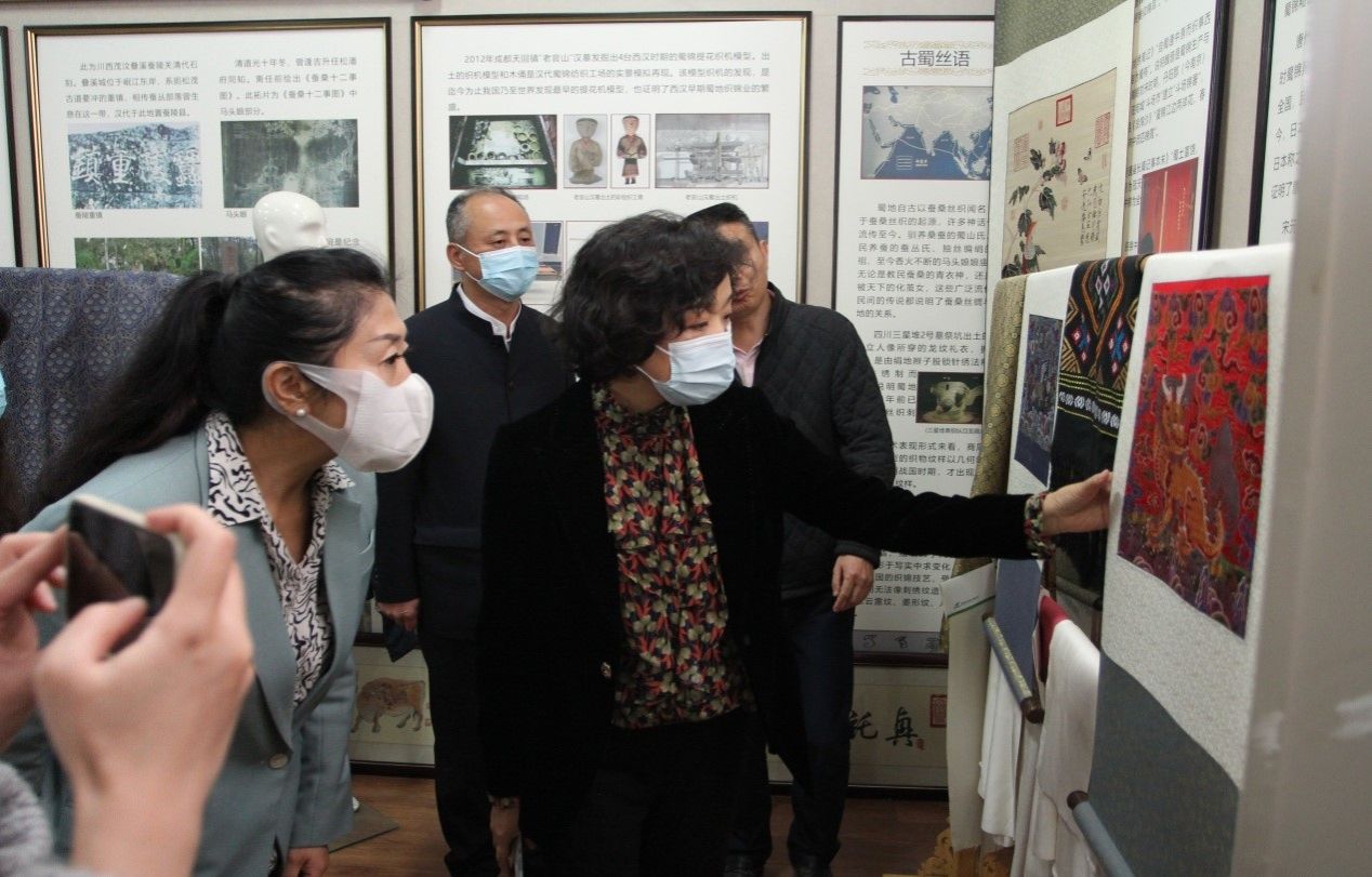 10月25日下午,四川省教育厅副厅长蔡光洁一行来校考察调研学校中华传统文化及非遗国际交流工作情况。在学校党委书记蔡玉波、校长石静等陪同下,蔡光洁副厅长一行参观了蜀锦织造技艺大师工作室、绣艺苑学研馆、非遗文创展厅并进行了交流座谈。