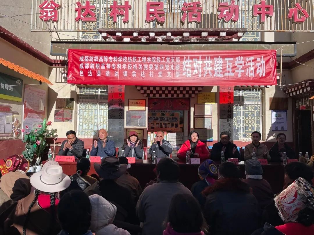 在翁达村支部结对共建互学活动上,石静讲道,近年来,色达各族干部群众在县委县政府的坚强领导下,战严寒、斗风雪、抗缺氧,团结一心,奋力拼搏,接续奋斗,色达各族群众同全国人民一道同步实现全面小康。在2年的过渡期里,砥砺奋进,不断巩固拓展脱贫攻坚成果,有效衔接乡村振兴,城乡面貌发生了翻天覆地的变化,基础设施不断提升,群众生活越过越红火,中华民族共同体意识不断铸牢,这是我们每次到色达亲眼所见,也是切实体会。她指出,做好定点帮扶工作是一项重大的政治任务,成都纺专将立足自身优势,坚持学校所能、色达所需、群众所盼,在教育、人才、技能培训、科技等方面,找好合作契合点,开展精准帮扶,为色达在中国式现代化新征程上作出贡献。