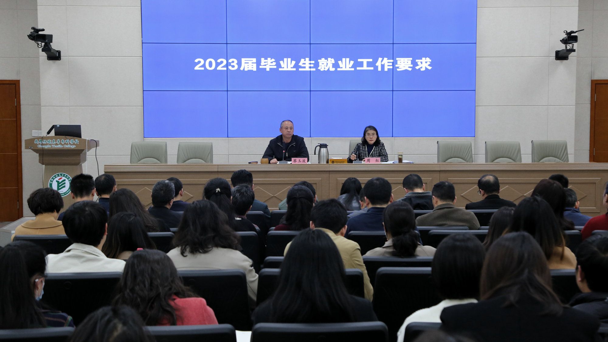3月22日下午,学校召开2023届毕业生就业工作会议。学校党委书记蔡玉波出席并作工作要求,党委副书记周红主持会议。