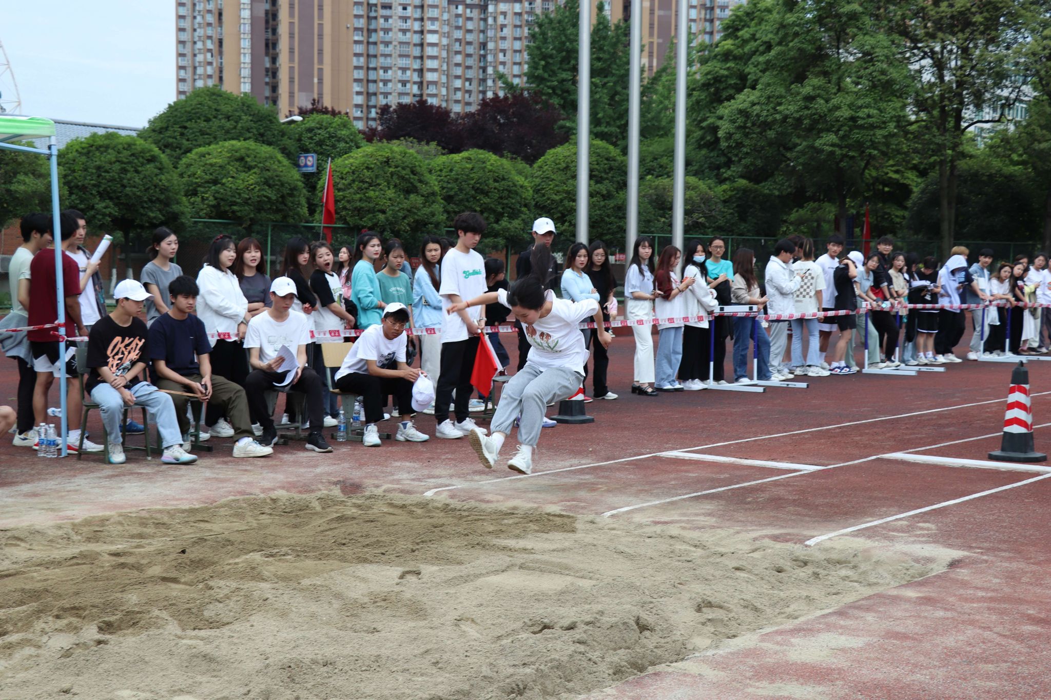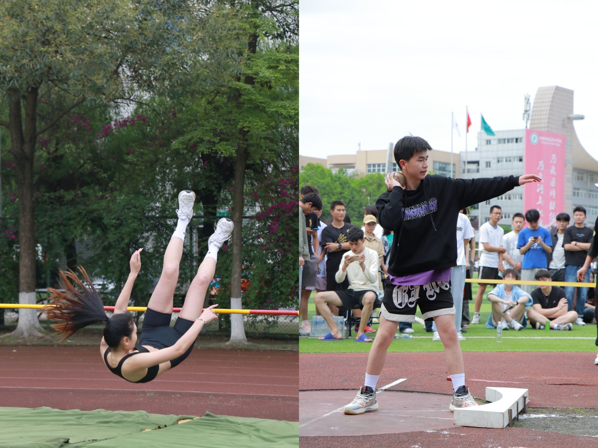 本次赛事活动包括田径运动会和教职工、学生趣味运动会。田径运动会包含跳高、跳远、铅球三大项目,分设男女组。在热烈的呐喊助威声中,参赛选手奋勇争先,取得了不俗的成绩:建工221班罗亮以1.80米的成绩打破男子跳高项目校纪录及田径运动会记录;纺织221班蒋茹以1.54米的成绩打破女子跳高项目运动会纪录。建工222班李鑫、服装211班肖燕分获男女组跳远第一名;酒管201班王佳乐、建装201班陈俊灵分获男女组铅球第一名。在团体总分排名中,智能建造与环境工程学院以78分的总成绩位列第一,纺织工程学院、服装工程与设计学院分列第二、三名。