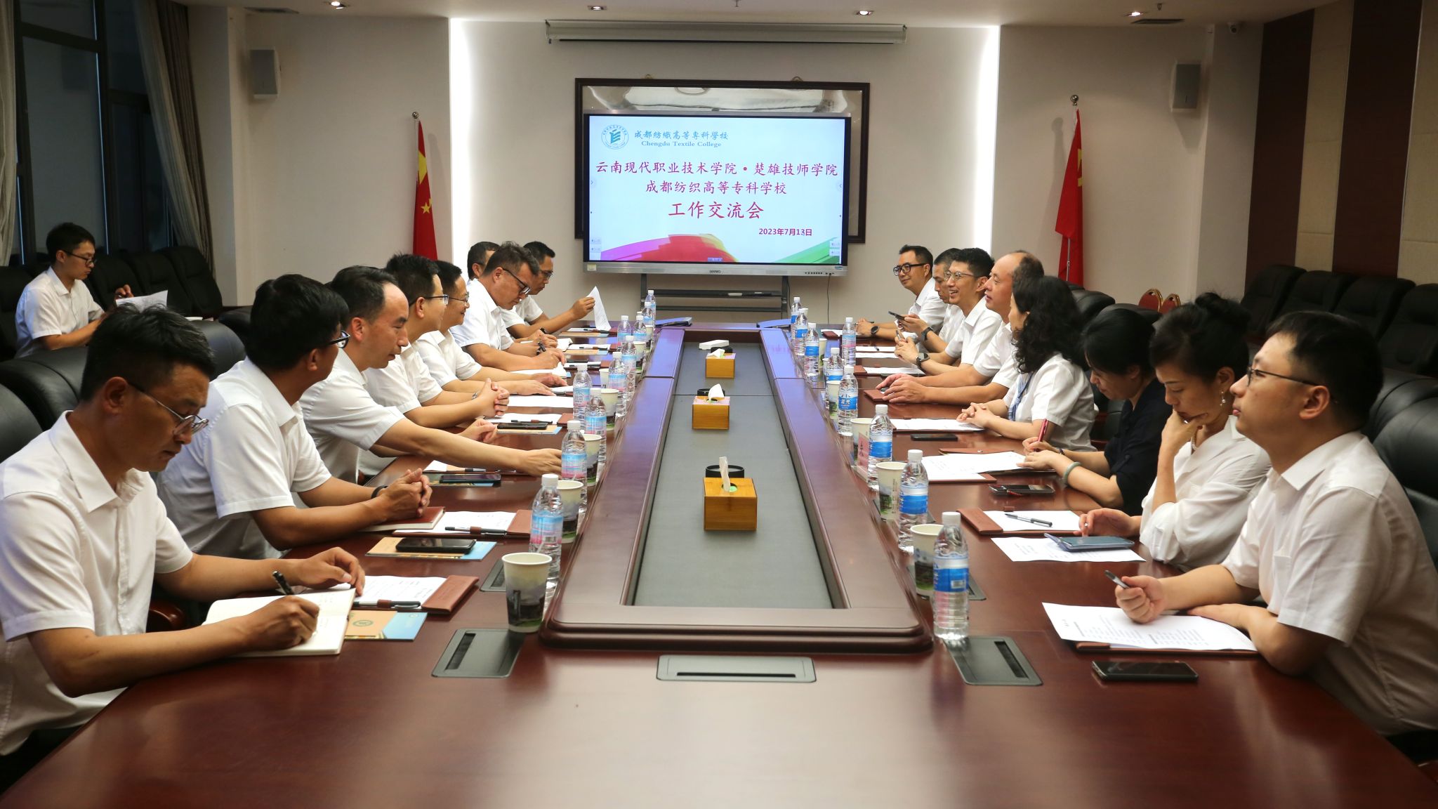 7月13日,云南现代职业技术学院·楚雄技师学院(以下简称云南现代职院)党委书记王若舟一行到访pg电子。pg电子党委书记蔡玉波等在北苑图书馆第一会议室与王若舟一行座谈交流,并签署两校合作协议。