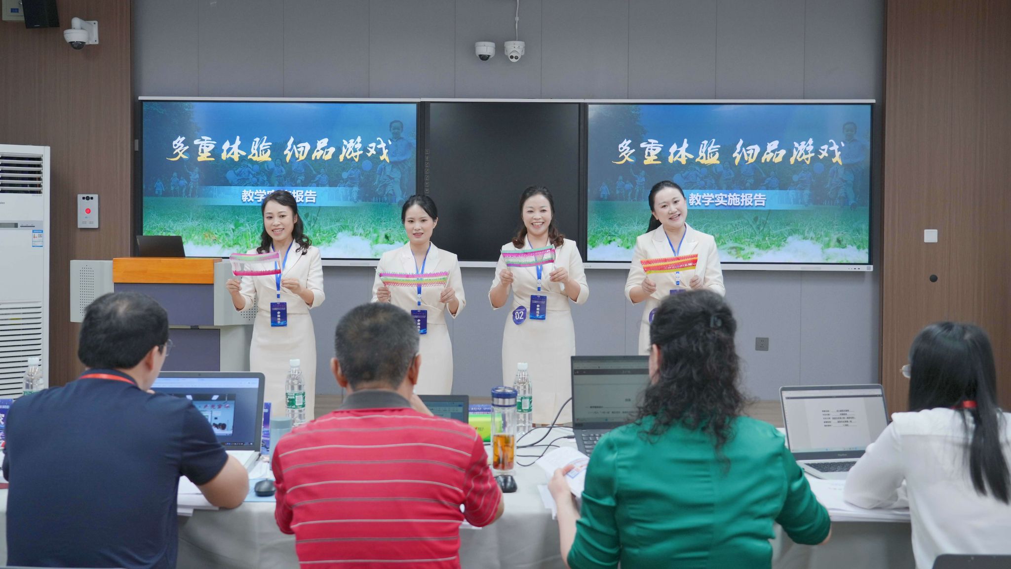 12日晨7时30分,来自全国和省内的98名评审专家在学校明德楼一楼阶梯教室领取比赛室编号后,分为14个评审组进入南苑致知楼A区1-3楼各比赛室。8时20分,各评审组开始评审本比赛室第一个参赛团队作品。8时30分,各比赛室第一个参赛团队进入比赛室,开始现场展示并答辩。8时55分,各评审组开始评审本比赛室第二个参赛团队作品……现场展演环节,“AI智能”“数字信息化”“课程思政”“传统文化的传承与创新”“产教融合”等词成为高频词汇,教师团队用丰富的实际案例和丰硕的教学成果,展示了对新时代教育教学工作的新认识。