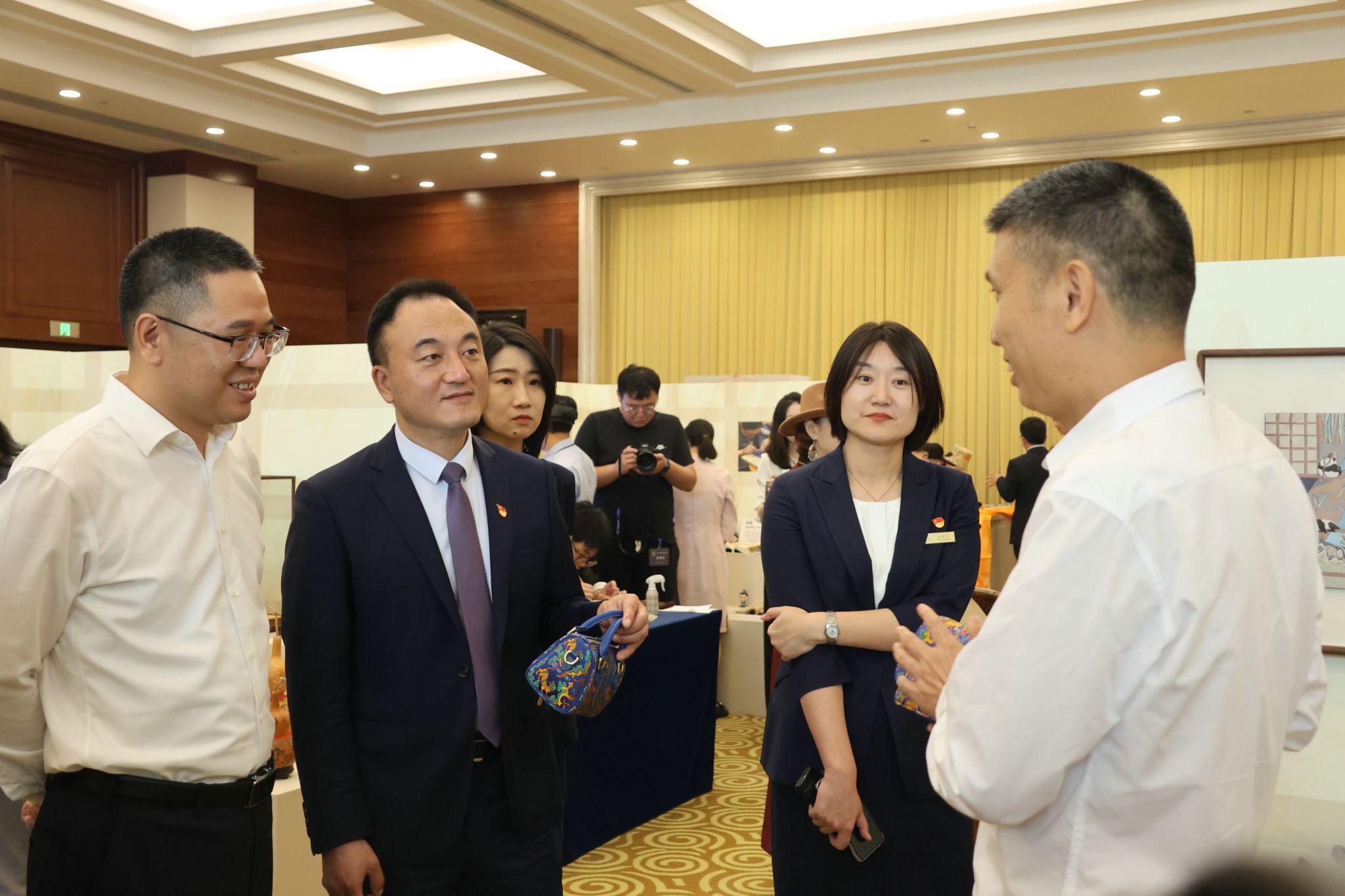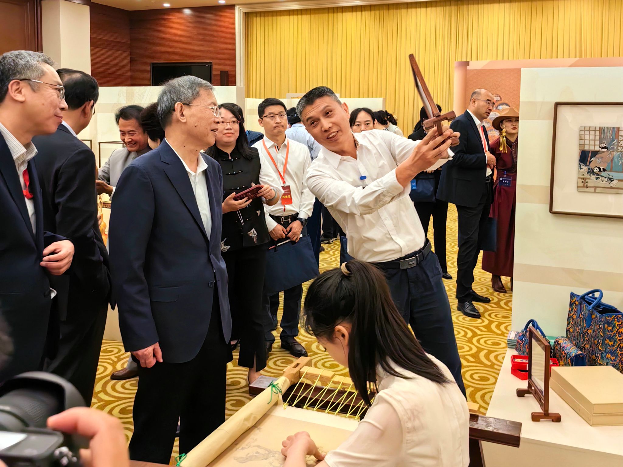 活动期间,全国人大常委会副委员长、中华职业教育社理事长郝明金,全国政协副主席、中华职业教育社副理事长秦博勇,四川省政协副主席、民建省委会主委、省中华职业教育社社务委员会主任谢商华等领导来到pg电子展区,近距离感受蜀锦蜀绣的独特魅力,对pg电子在纺织非遗传承、保护、创新等方面的举措和成果给予充分肯定。pg电子在非遗项目保护传承、技艺创新、人才培养和社会服务方面的探索和成效,也赢得了参观者的广泛赞誉。