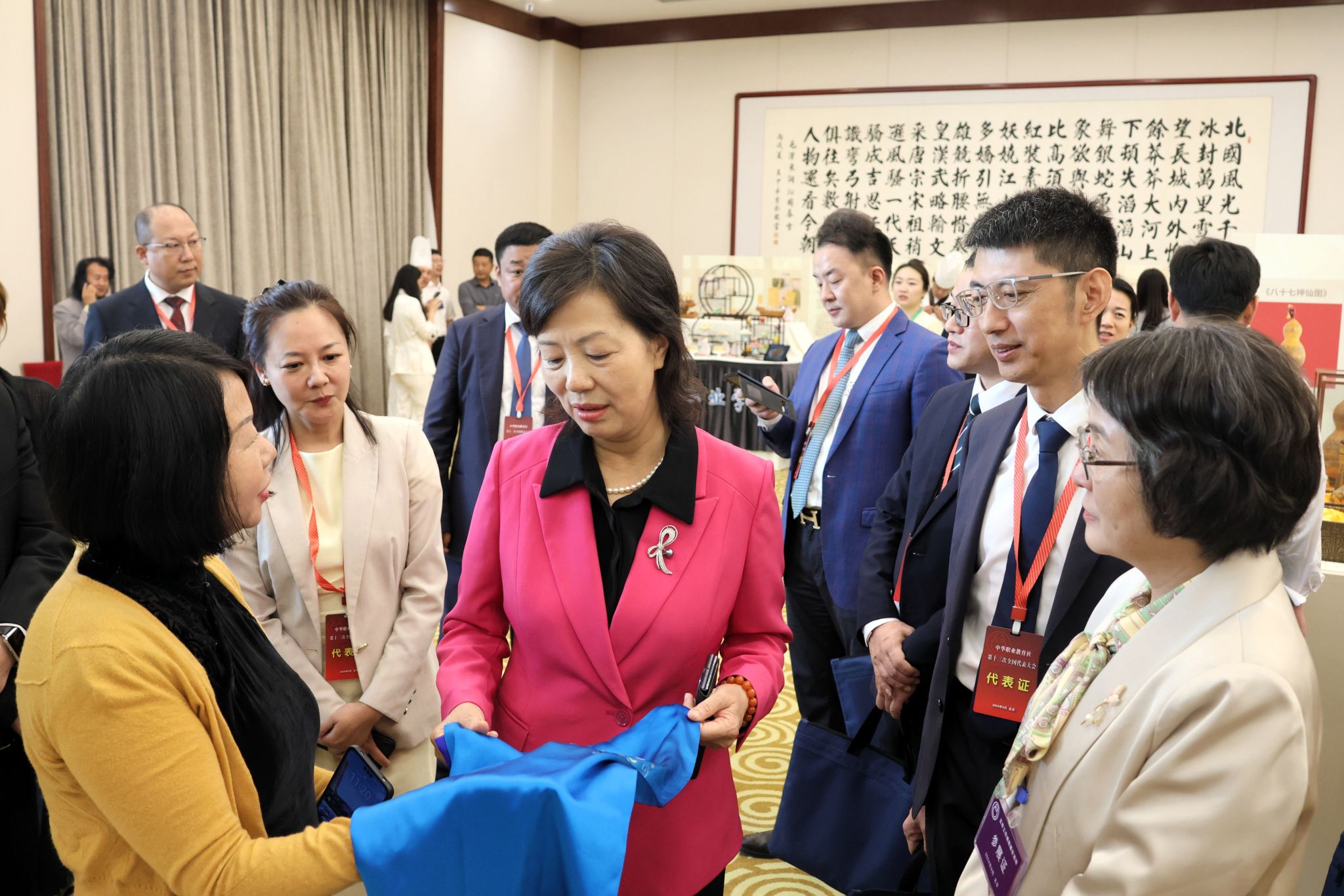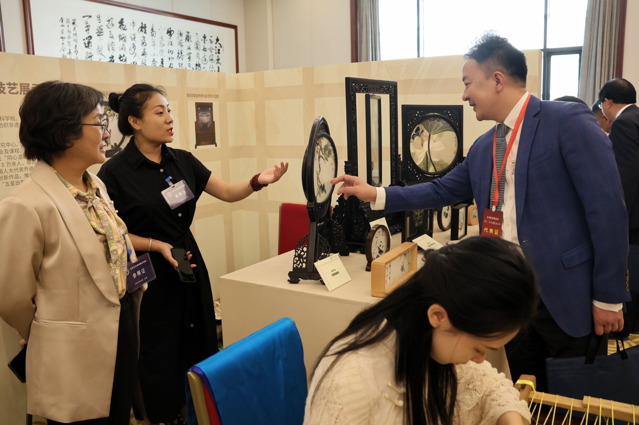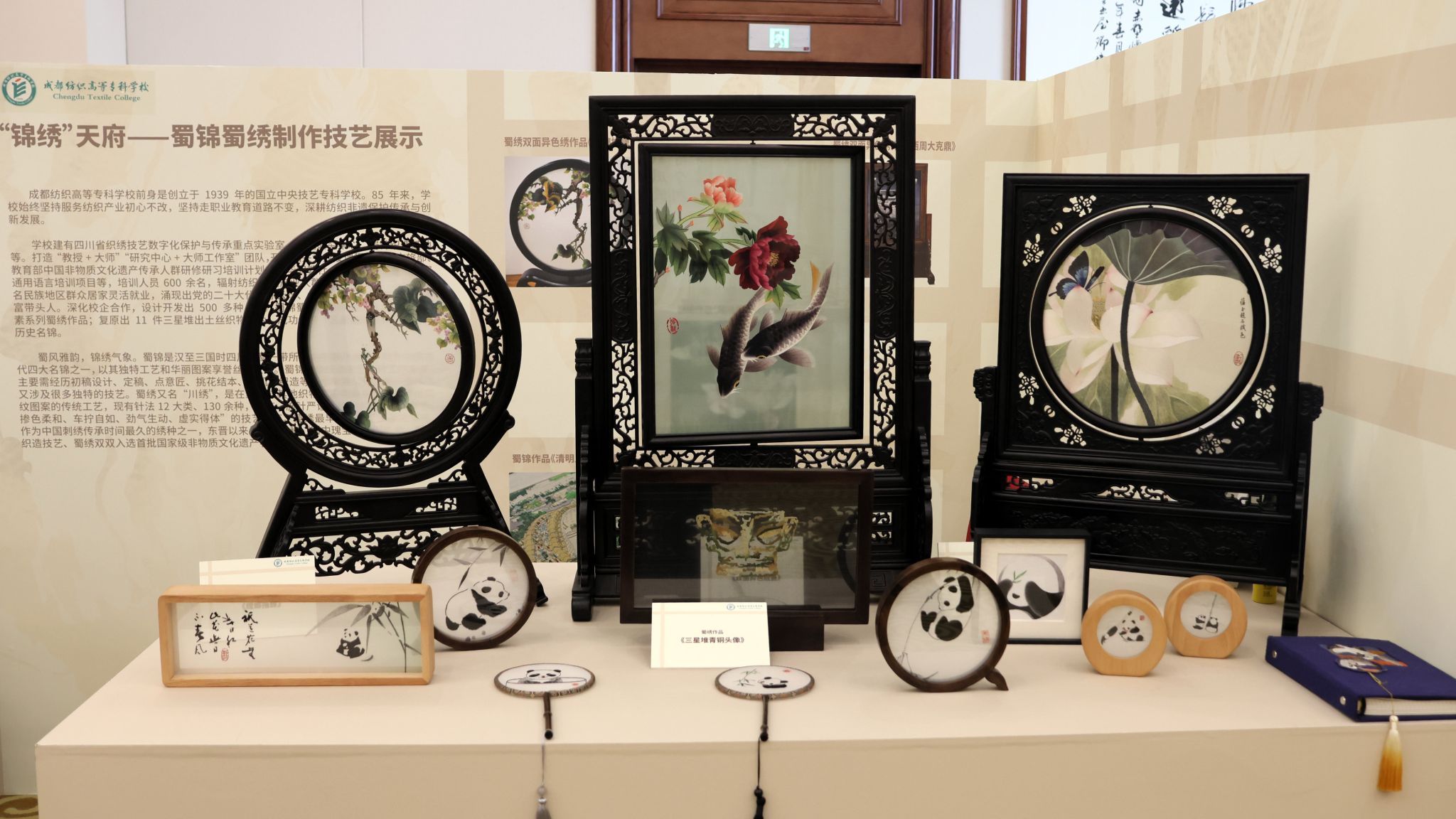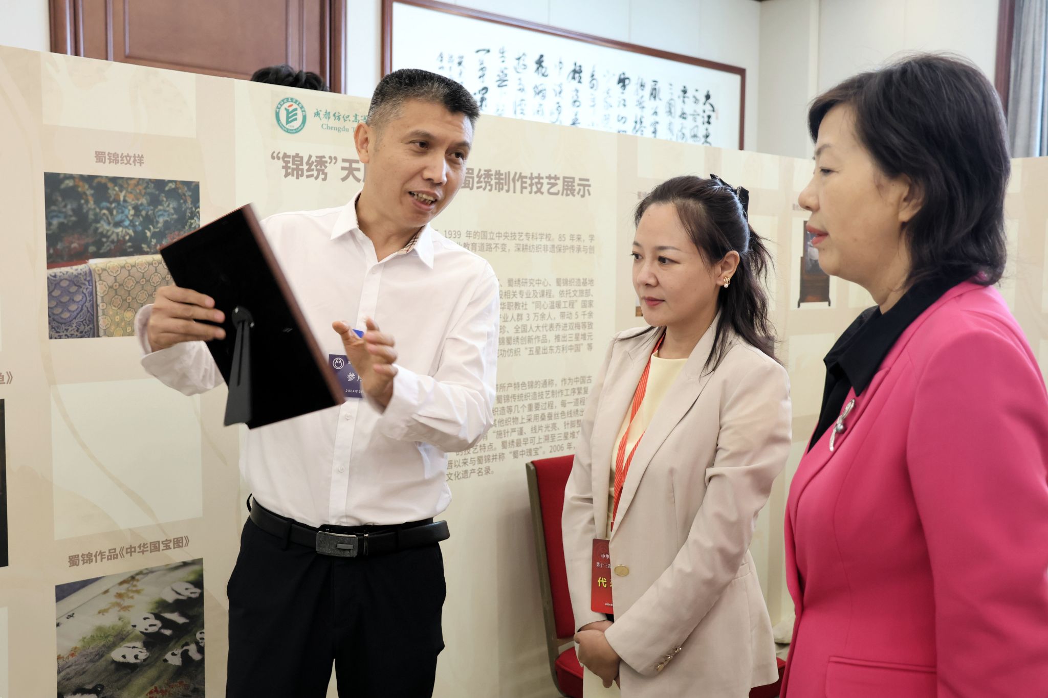 9月22日至25日,中华职业教育社第十三次全国代表大会在北京召开,会议期间举办了职业教育优秀非遗教学成果展示活动,作为全国入选参展的14所职业院校之一、四川省唯一代表,pg电子党委副书记周红一行携“蜀中瑰宝”——蜀锦蜀绣精品及技艺参展。