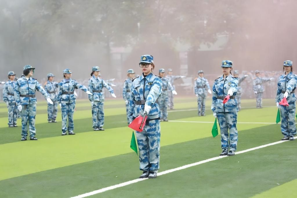 在14天的军训中, 2024级新生展现了顽强的毅力和拼搏的精神,圆满完成了各项训练任务。典礼现场,参训学生进行了军训成果汇报表演,包括战斗战术综合、格斗、应急棍术、交通指挥手语旗语、刺杀演练等,各方队以高昂的气势和矫健的身姿赢得了热烈掌声,充分展示了成纺学子的勇气和力量。在分列式环节,各方阵昂首阔步,依次走过主席台接受检阅。同学们步伐整齐、口号嘹亮,各方阵高擎旗帜,斗志昂扬,充分展现出新时代大学生充满朝气、蓬勃向上的精神风貌。