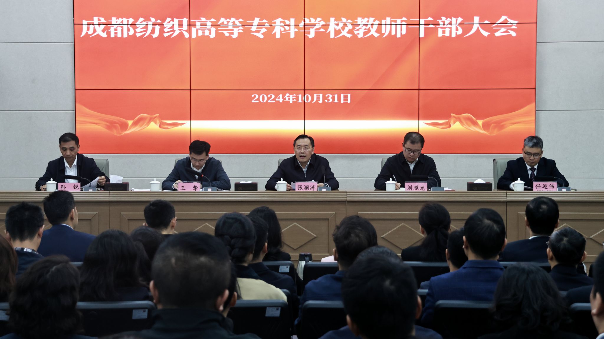 孙锐代表学校全体师生向省委、省委教育工委对学校的关心和支持表示感谢,对任迎伟同志加入成纺大家庭表示欢迎。他表示,作为校长,将坚决执行和落实好党委领导下的校长负责制,坚决做到旗帜鲜明讲政治,顾全大局讲团结,勇于担当讲实干,与任迎伟同志一道团结带领全校师生推动学校高质量发展,为谱写中国式现代化四川新篇章贡献成纺力量。