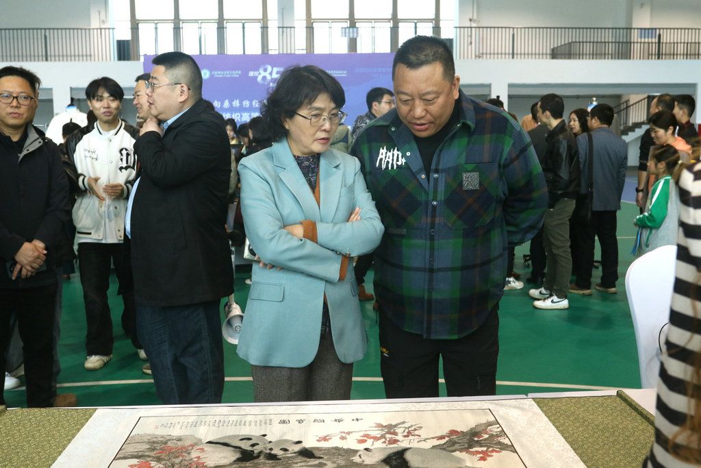 在体育馆,返校校友观看了非遗作品及文创作品展。织绣技艺非遗数字化保护与传承四川省文化和旅游厅重点实验室、纺织工程学院、服装工程与设计学院、艺术设计与创意学院携手展出了精美、实用的蜀锦、蜀绣及文化创意作品,令校友们流连忘返、爱不释手。部分作品被校友们当场抢购,部分校友还现场与工作人员和相关负责人联系订制、订购事宜。