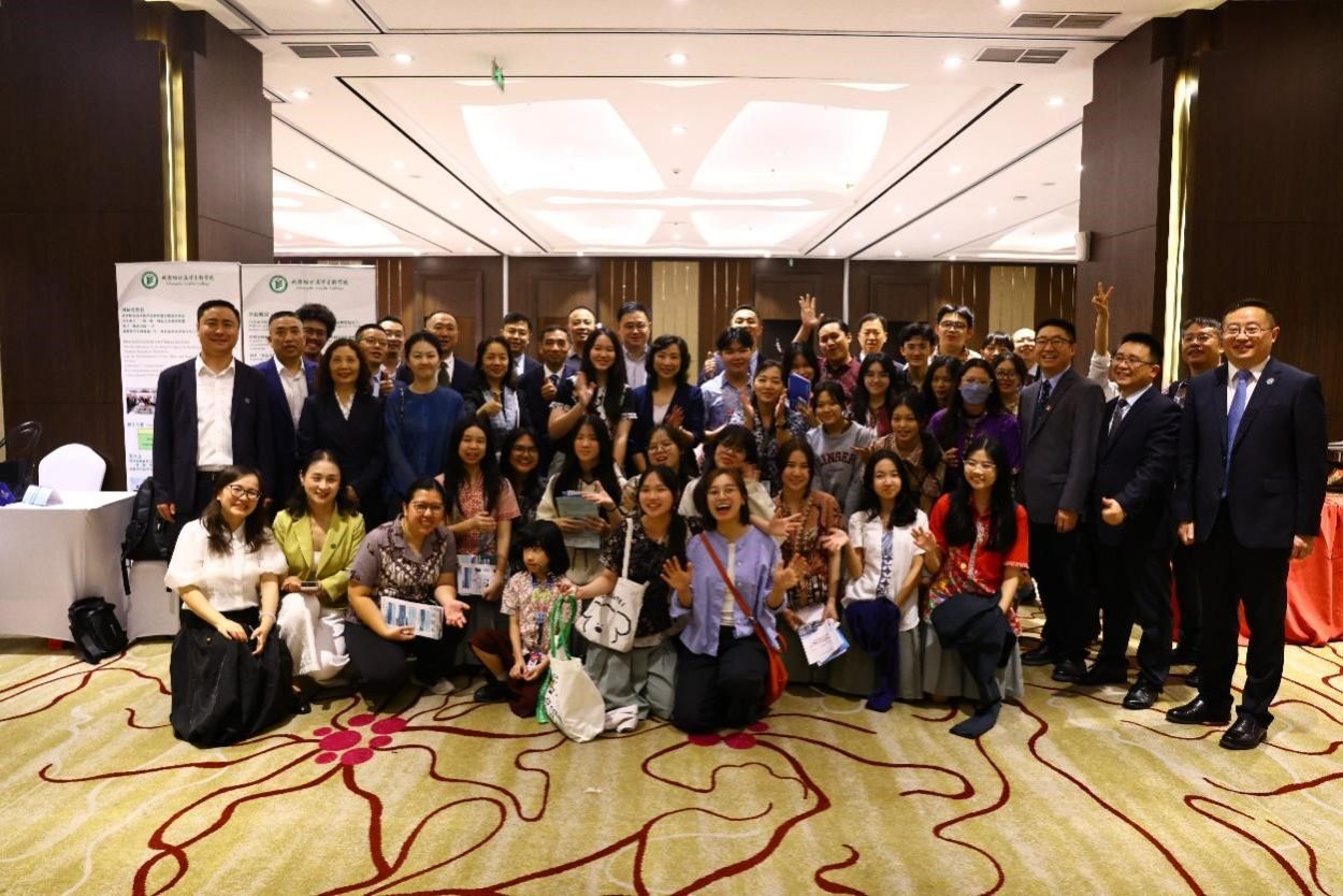 图六:在老挝教育经贸推介交流会现场举行嫘祖学院授牌仪式