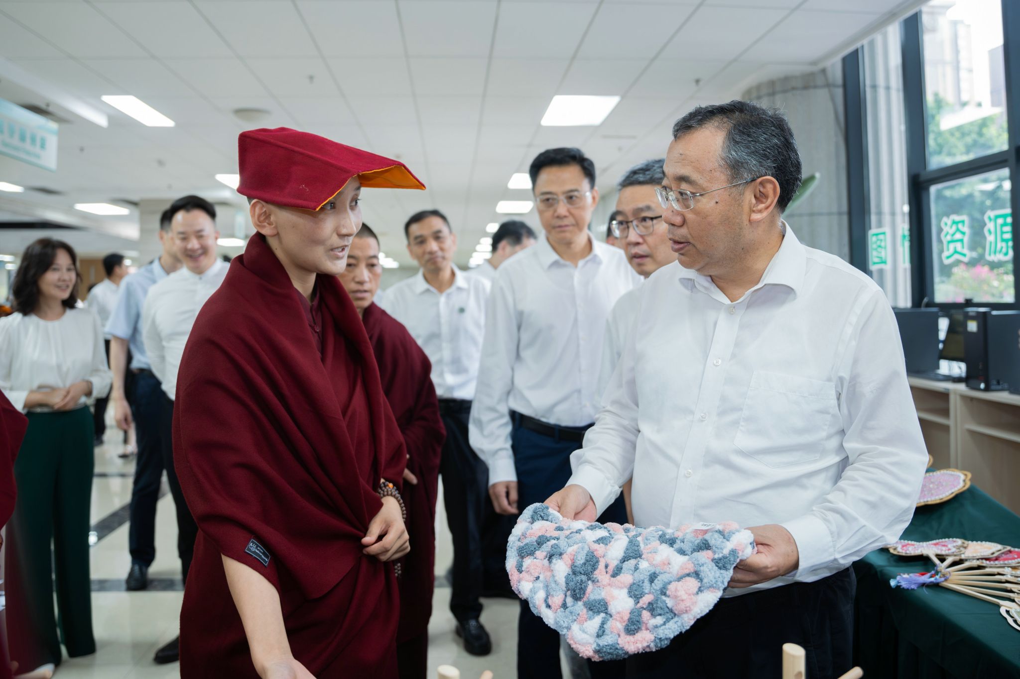 结业式后,与会领导参观了pg电子色达县非物质文化遗产展览馆与织绣技艺非遗数字化保护与传承四川省文化和旅游厅重点实验室,进一步了解了pg电子非遗保护传承工作、蜀锦蜀绣产学研用情况和“道技融合、以文化人”觉姆培训体系。