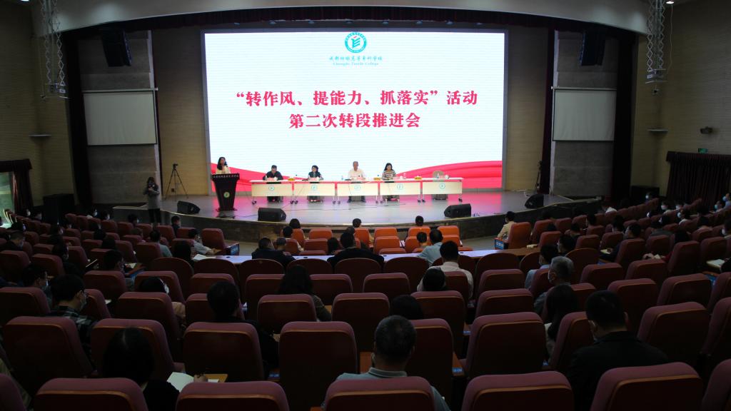 5月20日上午,pg电子在南苑多功能厅召开“转作风、提能力、抓落实”活动第二次转段推进会。会议对“转作风、提能力、抓落实”活动第二阶段开展情况进行总结,并对第三阶段工作进行安排部署。党委书记蔡玉波强调,全校上下要增强推动学校高质量发展的紧迫感、危机感,牢固树立“兴校有我、人人有责”的使命感,扛起当代成纺人的责任,团结一致行动起来,早日实现学校建设职教本科的奋斗目标。
