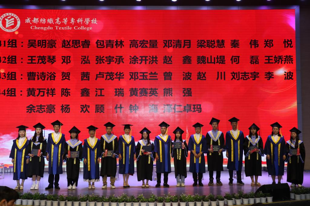 典礼中首次展示了由学校服装工程与设计学院师生团队设计、制作的毕业服,服装以“传承校训,立志于金牌蓝领人”为设计灵感,通过宽大垂坠的廓形与胸前规则的折裥等设计元素延续了中国传统服饰强调纵向上升的外形特点,寓意“直而不肆”的修身美德;并将“黄青白赤黑”之中国五色贯穿于系列主色中,通过垂带的大小分别在校长服、导师服、学生服上形成级别渐次。整套服装寄语毕业生们传承校训精神,成为一名德技双馨的蓝领精英,用技术谱写梦想,用技能谱写绚丽人生。