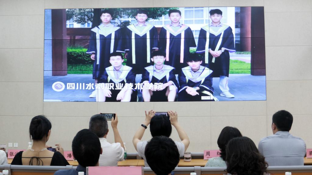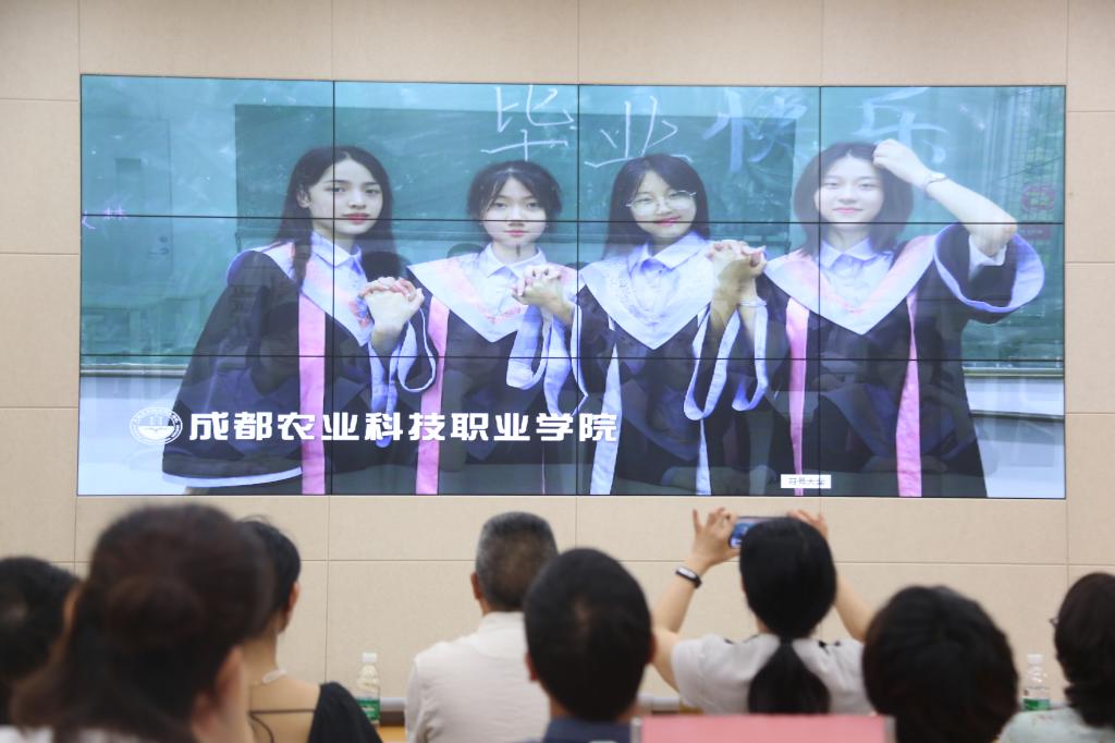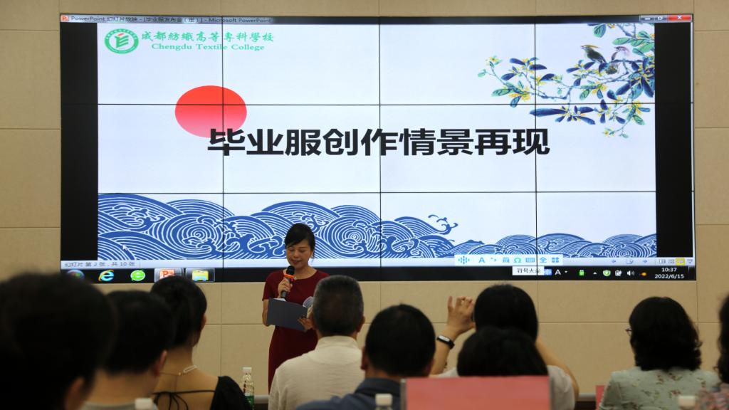 发布会上,毕业服设计团队的15名师生向中国青年报、中国教育报、中国网、四川广播电视台科教频道、四川新闻网、今日头条等媒体记者和服装企业代表展示了他们设计、制作的职业院校毕业服、导师服和校长服。服装工程与设计学院院长李晓岩介绍了学校开展职业院校毕业服设计定制工作的背景和愿景;胡毅老师和杨艳同学分别介绍了校长服、导师服和毕业服的设计思路。