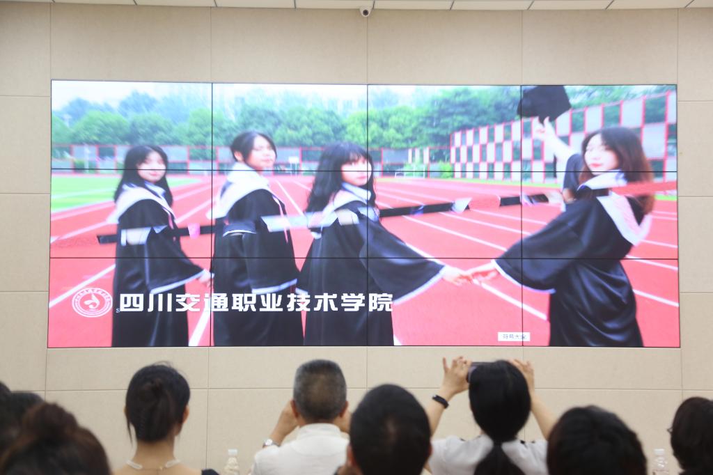 成都市服装(服饰)协会会长黄文章、西澳集团战略部总经理刘强和学校校长石静、党委副书记周红触摸大屏幕,开启了本次发布活动。