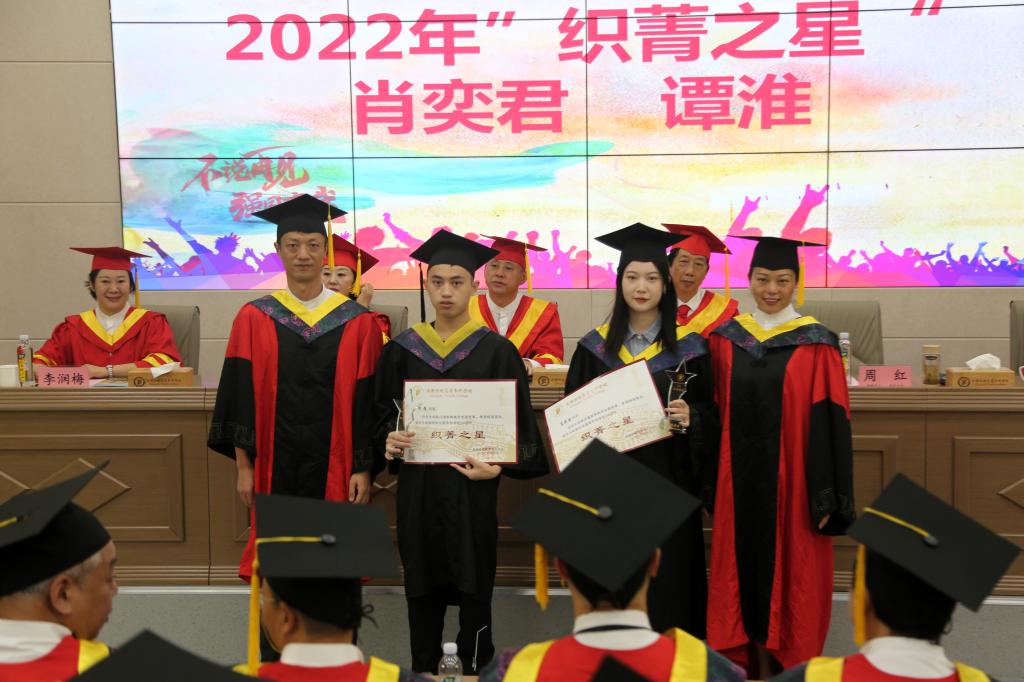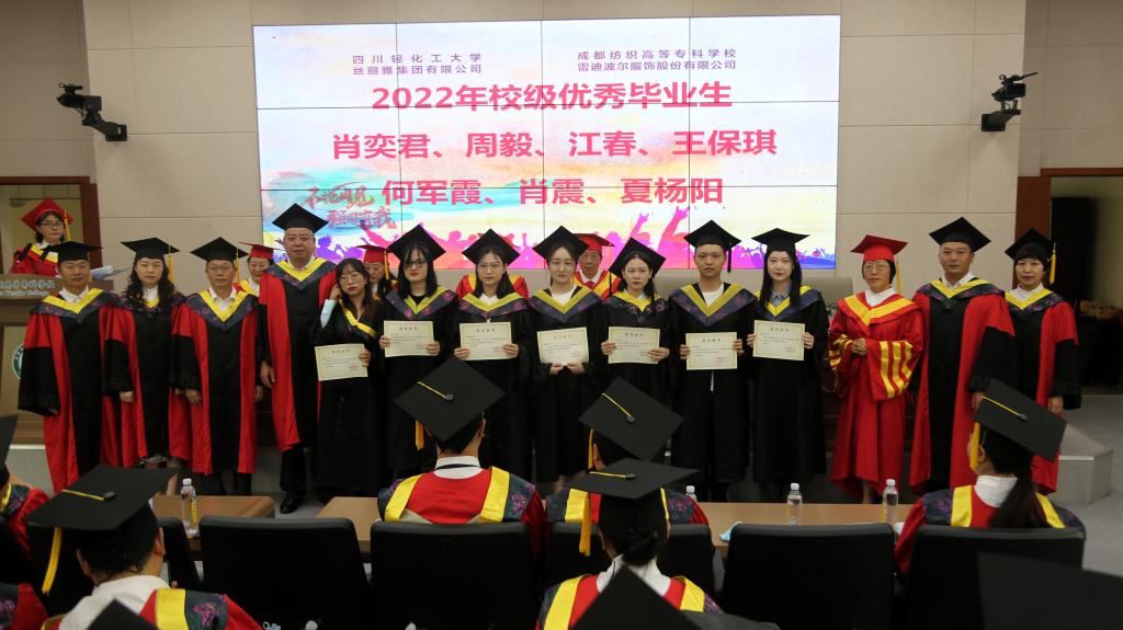 当日,肖奕君等3名学生被授予2022届四川省优秀毕业生称号,周毅等19名学生被授予“2022届四川轻化工大学优秀毕业生”称号,谭淮等2名学生被授予pg电子“织菁之星”称号;135人获学士学位。