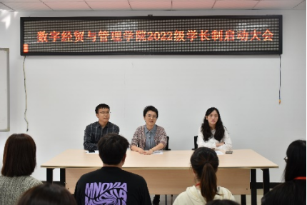 10月20日,数字经贸与管理学院在产教融合大楼会议室召开2022级学长制启动大会。院长王浩瀓、党总支副书记何酉宁、2022级新生代表、高年级学长团队成员参加会议,学院学长制指导老师胡春主持会议。