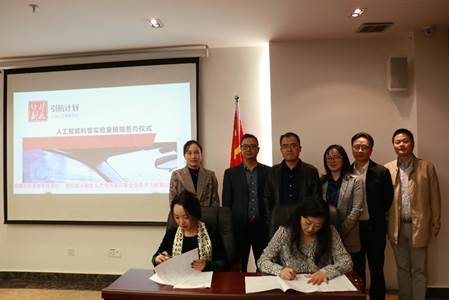 石静校长与基金会代表王悦语签署了捐赠协议,根据协议,基金会向智造学院捐赠10万人民币、价值70万的人工智能实验室,和价值1340万元的“引航计划”公益项目资源。