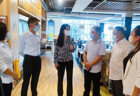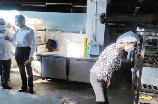 10月21日下午,学校党委副书记、校长石静,副校长宋超在保障处负责人和餐厅经理的陪同下,深入南苑食堂,对餐厅、后厨进行检查指导。