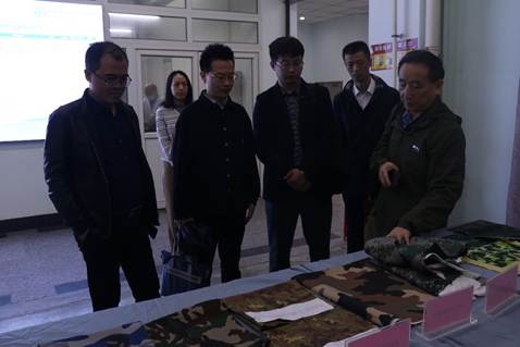 郑光洪教授从重点实验室的研究水平与贡献、队伍建设与人才培养、开放交流与运行管理、下一步工作规划等四个方面进行了工作汇报。李明富副校长陪同专家组一行参观重点实验室,专家组一行对重点实验室的军民融合、无水印染技术、天然植物染料研究等成果进行了详细了解。
