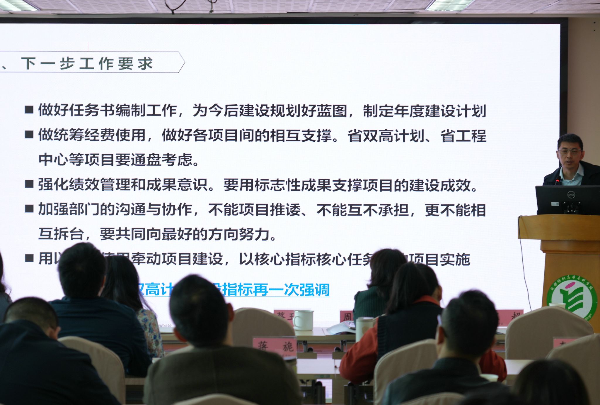 全体校领导,相关职能部门、学院负责人,双高建设国群一级负责人、省双高专业群一级负责人参加会议。会议由副校长宋超主持。