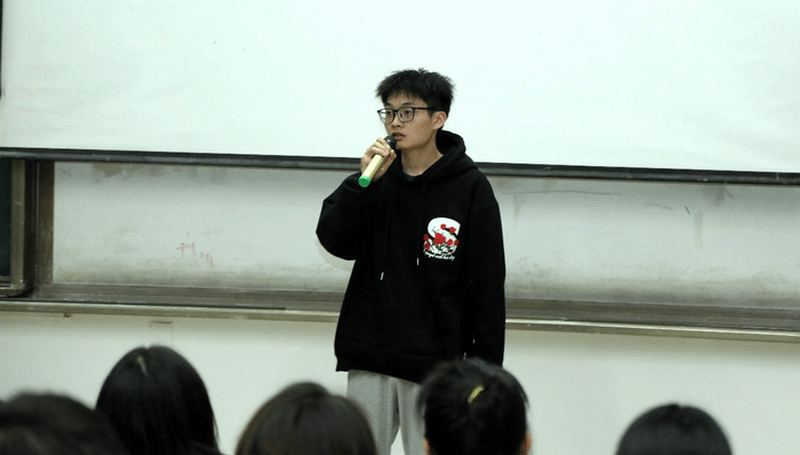 校史馆解说团干部代表杨雪琴发言,对三个团队的职能职责作了介绍,对萌新的到来表示欢迎和祝福。新生代表彭宇航分享了他在新闻编辑部的工作与学习经历,表达了对团队的热爱,并期待在以后的工作中,大家一起互相学习、共同成长。
