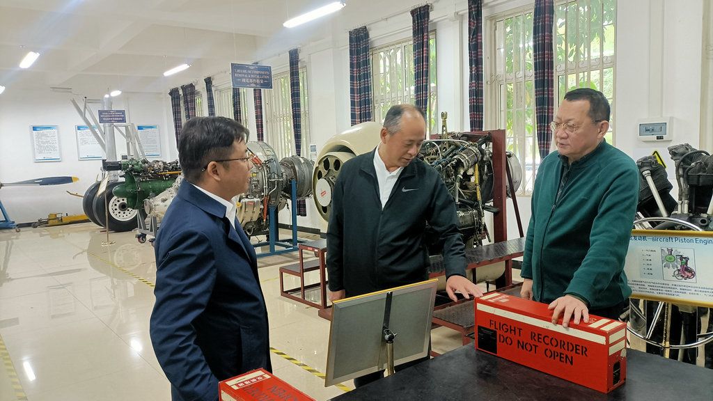11月7日、9日,pg电子党委书记蔡玉波,党委副书记、校长石静和领导班子成员、相关职能部门负责人先后赴西南航空职业技术学院(简称西航)学习调研。西航董事长魏全斌、院长尹析明、党委书记岳文喜等热情接待了pg电子一行,并全程陪同和讲解。