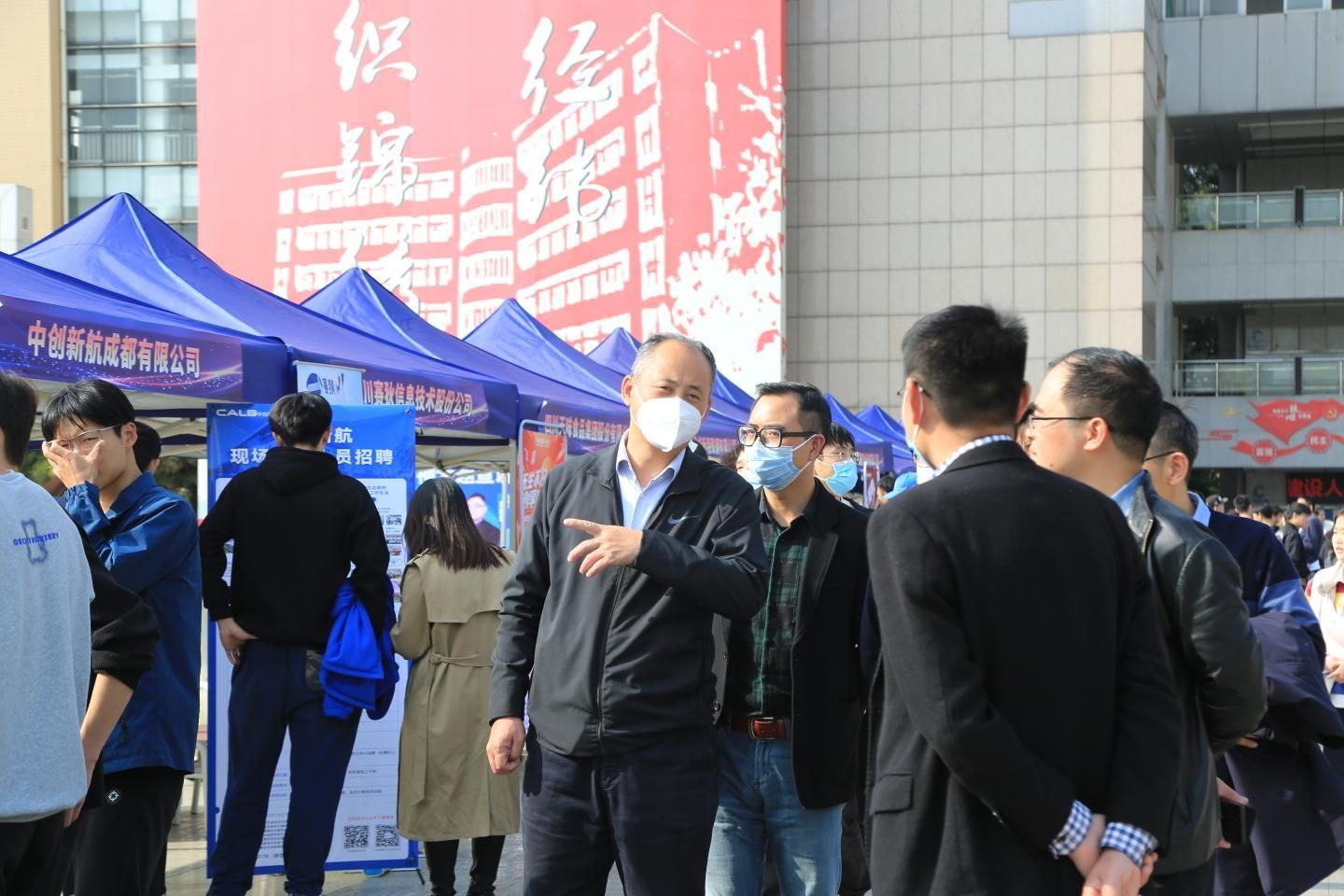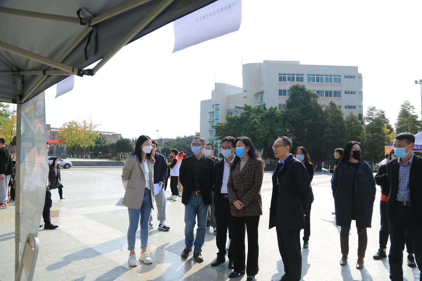 学校党委书记蔡玉波、校长石静、党委副书记周红、纪委书记张江婴、副校长宋超、副校长李明富和学创处、智造学院、电信学院负责人也来到现场,与毕业生们亲切交谈,并给予现场指导,勉励应聘学子要志存高远,求真力行,抓住机遇,摆正心态,敢于下基层,勇于磨砺自己,把青春奉献给党和祖国。