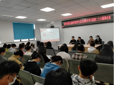 11月22日下午,数字经贸与管理学院学生党支部召开党的二十大精神学习会,党总支书记王霖、专职组织员蔡夏璐、学生第一党支部书记何敏以及全体学生支部党员参加会议。会议由学生第二党支部书记胡春主持。