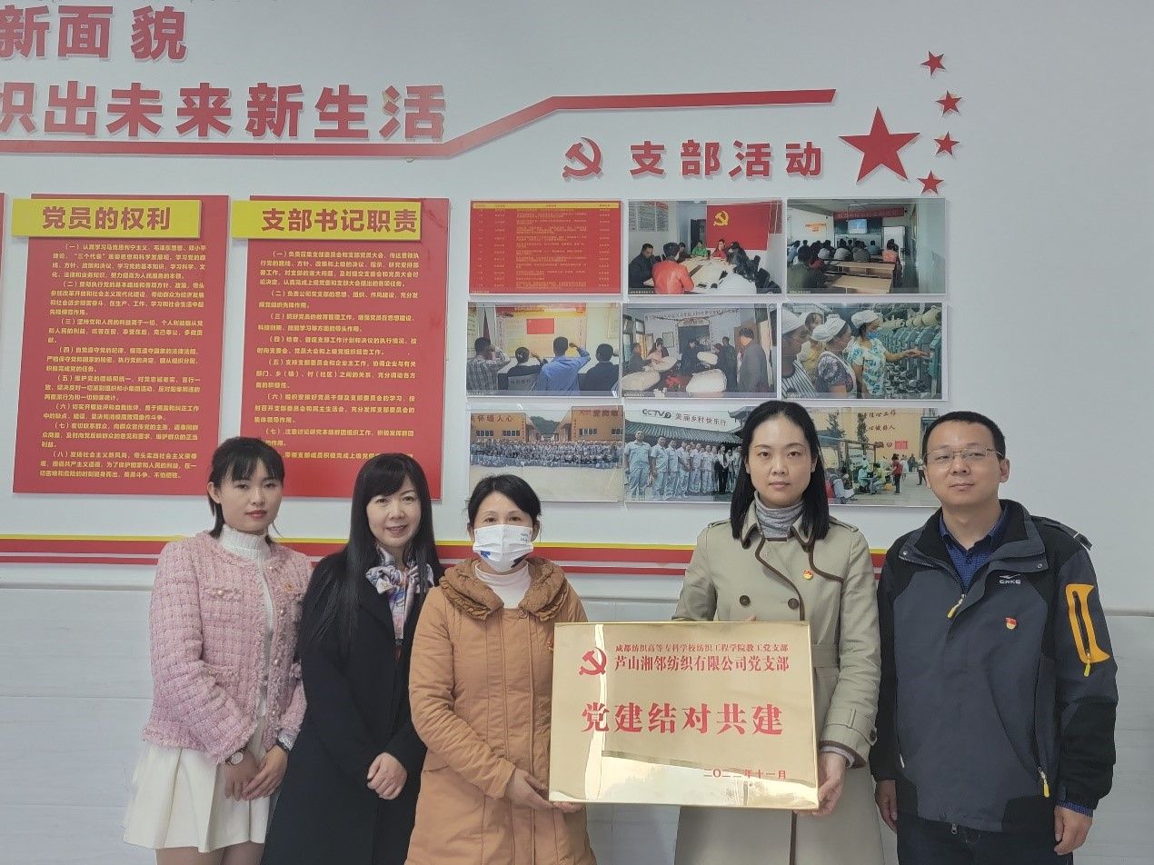 11月25日下午,pg电子纺织工程学院教工党支部党员教师赴雅安芦山,与芦山湘邻纺织有限公司党支部举行结对共建活动。
