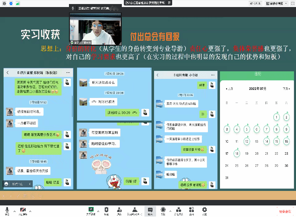樊廷友对学生在顶岗实习中取得的成绩给予充分肯定和高度评价,希望同学们及时总结经验,将实习中所感、所思、所学、所悟、所获深度融入到今后学习与生活中,以顶岗实习为契机,进一步思考和明确个人的职业发展目标与方向,为未来就业做好准备。王敏、梁廷柱也表达了对学生未来发展的祝福与期许,对全体顶岗实习负责老师表示感谢。王敏表示,今年酷暑与疫情共存的盛夏,给同学们的顶岗实习带来了前所未有的压力和挑战。面对严峻的外部环境,老师和同学们都没有退缩,不怕苦、不怕累,各司其职、紧密配合,顺利完成了各项工作,取得了丰硕成果,老师和同学们的精神令人动容,值得我们发扬学习。