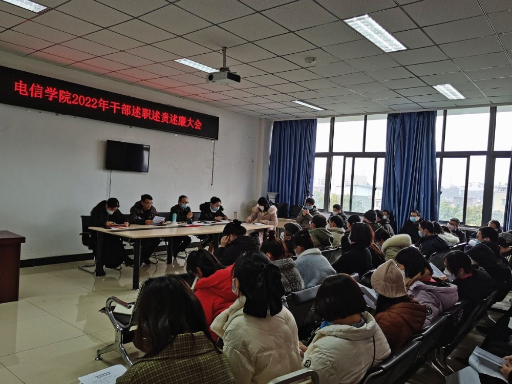 1月3日下午,电信学院在C410会议室召开2022年度中层干部述职述责述廉大会,班子成员逐一向全院教职工作述职述责述廉报告,党委组织部、纪委办到场对中层干部进行民主测评。会议由学院党总支书记王坤主持。