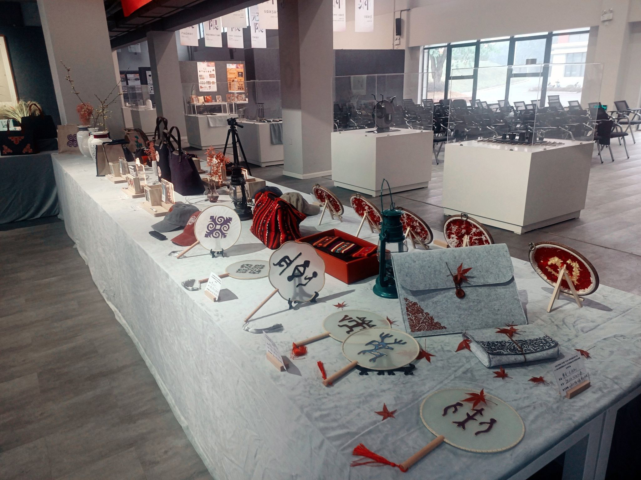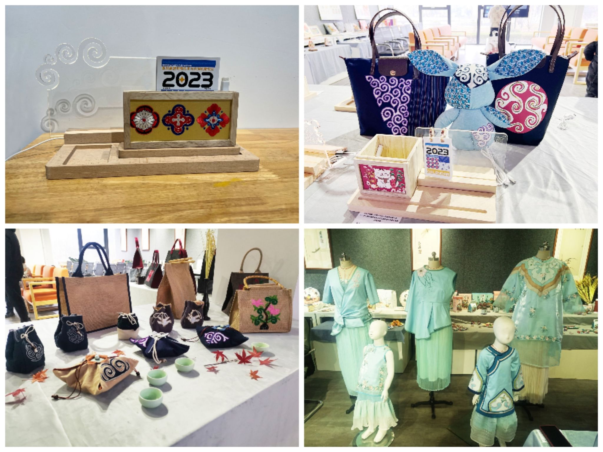 非遗彝绣研修创新设计作品展是本期研修班《产品创新实践》课程的成果汇报,由创艺学院、服装学院4个研培教师团队共同指导完成,服装服饰开发、彝绣文创产品开发、彝绣生活衍生品开发和彝绣旅游产品开发四个系列、共计80余件作品参展。