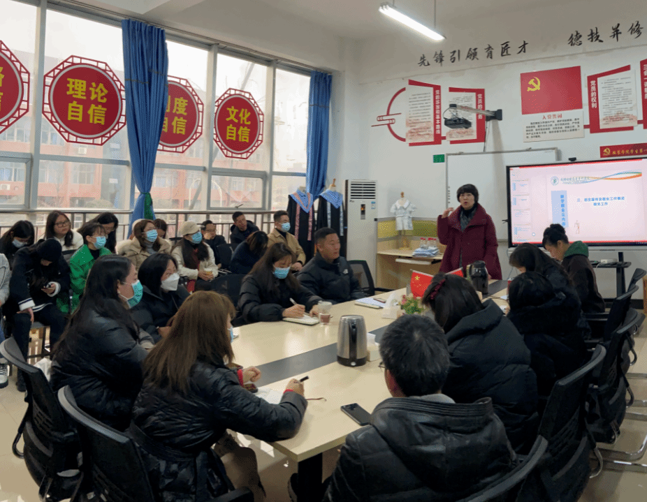 党总支书记太扎姆对绩效考核工作进行复盘,请老师们提出宝贵意见和建议,以进一步完善今年的绩效考核方案。她就招生宣传及就业工作作了说明和强调,希望不同岗位的老师们群策群力,共同推进就业工作进程。她还强调,本年度,学院将迎来“双高”、“三全育人”、中华优秀传统文化基地建设的验收,希望老师们做好攻坚克难的准备,心往一处想,劲往一处使,做好迎接验收工作。