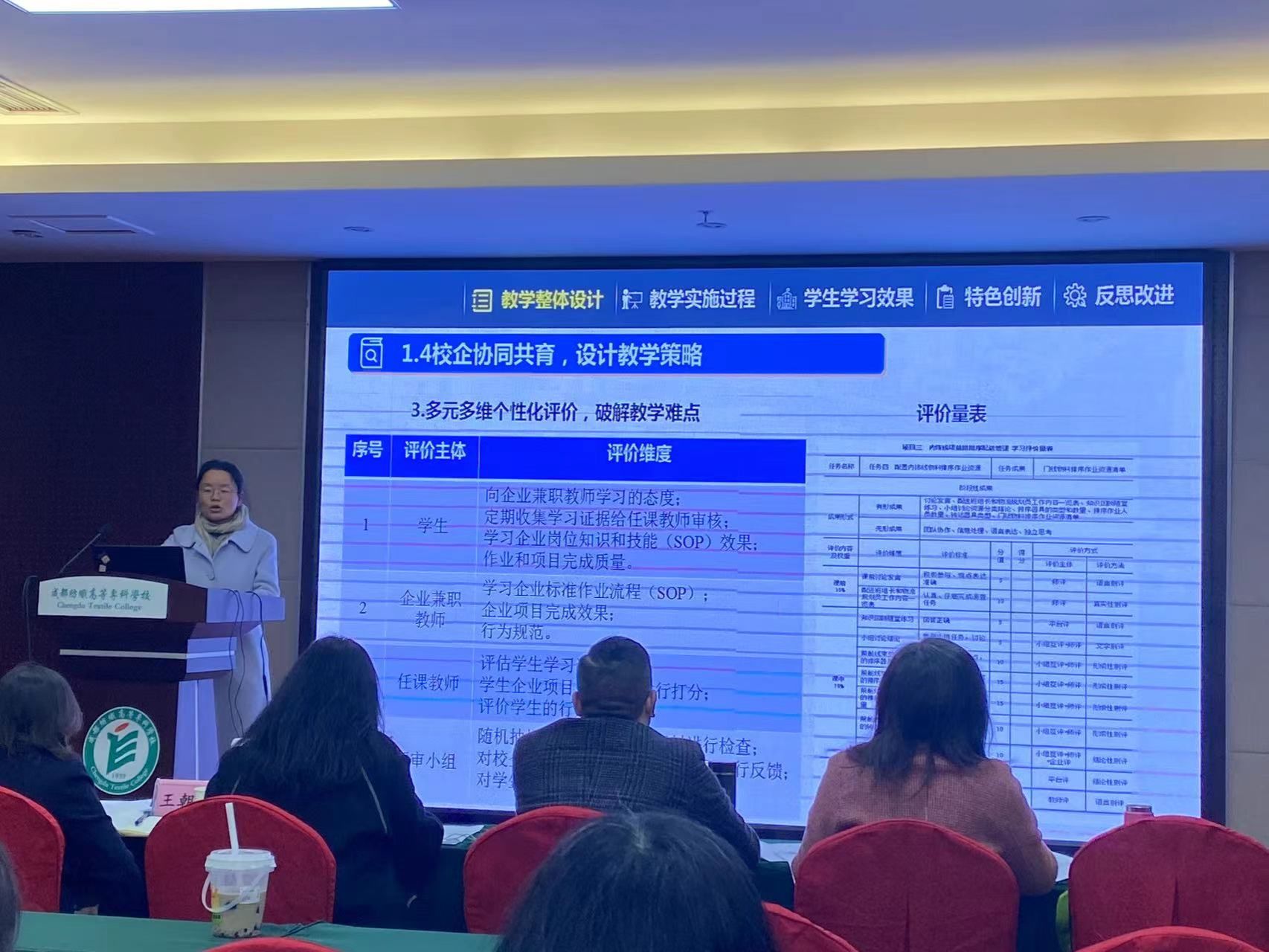 比赛严格按照校赛流程及规定进行,参赛团队按抽签顺序进行教学实施报告讲解及无学生教学展示,回答评委提问。评委根据参赛作品资料、教学团队现场展示和答辩情况,为参赛团队打分。