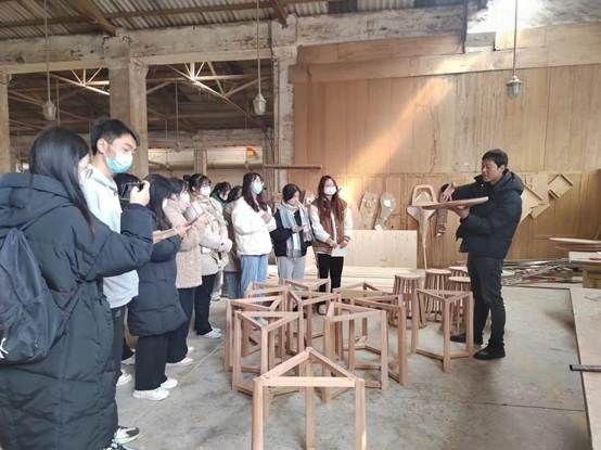 2月23日,由任课教师带队、辅导员配合,产品艺术213班《家具设计》、艺术设计220班《庭院设计》等6门课程200余名学生前往成都唯意装饰有限公司、四川省百合居装饰工程有限公司、成都臻品智造家具有限公司、成都沙龙家具制造有限公司、成都鑫艺彩印包装有限公司等校企合作企业,将课堂搬进企业、搬进项目现场,开展了一堂堂生动的现场教学,将理论内容与实践学习相结合。学院党总支书记刘登秀,辅导员孔超、王晓俊跟随其中一个班级前往沙龙家具公司,旁听教学并与企业对接学生就业等工作。