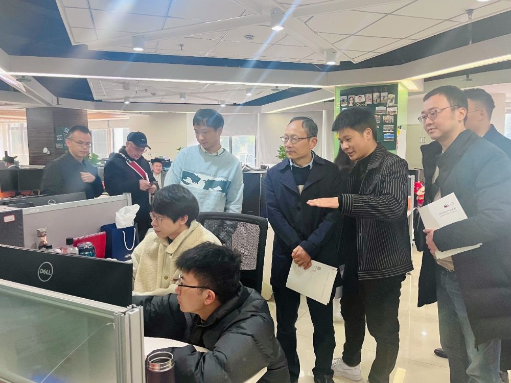 双方在公司总部进行交流座谈,吕胜详细介绍了四方伟业公司企业情况,以及其大数据人工智能分析、大数据数字孪生可视化等大数据解决方案。陈鹏对产业学院的人才培养模式,以及与高职院校合作共建产业学院的经验和做法作了具体介绍。校企双方围绕人才培养、大项目申报、学生实习就业等方面的深入合作进行广泛交流。交流结束后,黄勤陆一行参观了四方伟业公司研发部,详细了解企业实际项目的开展情况。