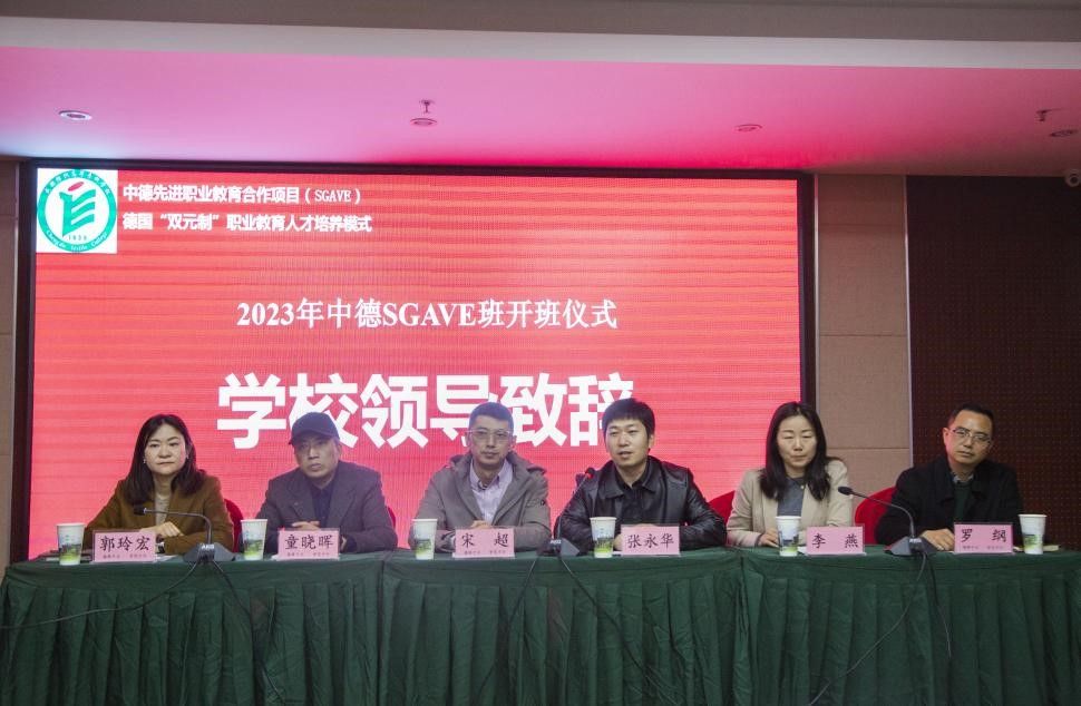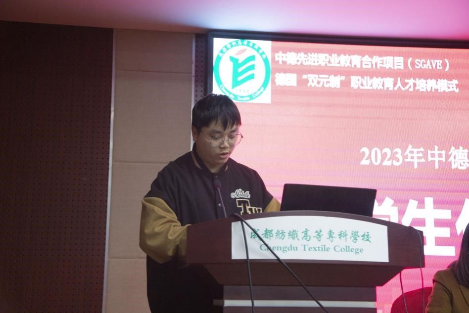 中德SGAVE班学生代表温鑫伟同学发言表示,很自豪和幸运能够加入中德SGAVE班,感谢学校和学院领导、老师为中德SGAVE班的建设做出的努力和付出,他表示,全体中德班学生一定珍惜这来之不易的机会,在今后的学习中,刻苦、踏实、认真、勤于实践,争取在学校是好学生,到企业是好员工,进社会是好公民。