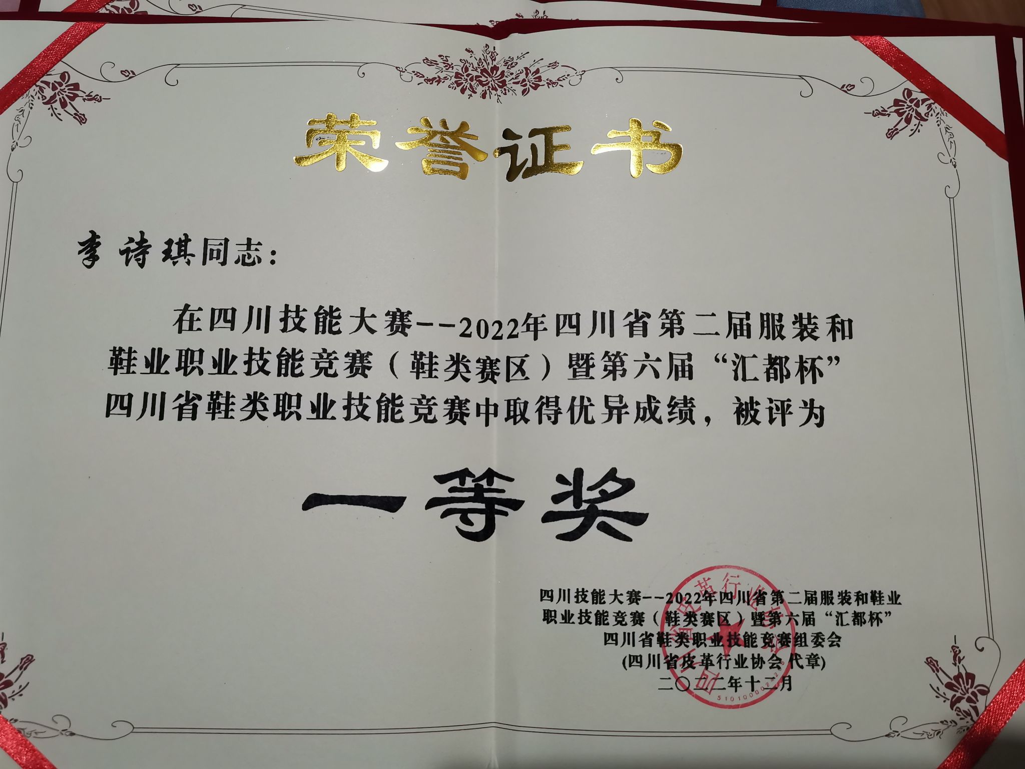 3月10日,四川省皮革行业协会2022年理事会暨四川省皮革学会第九次会员代表大会在成都和邦集团隆重举行。pg电子服装学院副院长吴杰、皮具专业教师刘晓影受邀参会。大会举行了四川省五一劳动奖章、四川省鞋类技能大赛颁奖仪式,pg电子皮具专业学生获得四川省鞋类技能大赛一等奖1名、三等奖1名和团体优秀组织奖1项。
