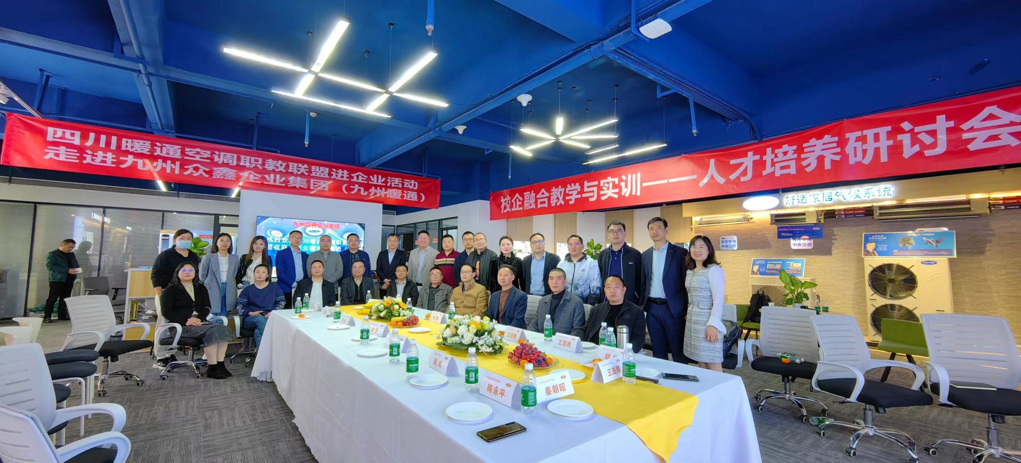 据悉,本次活动系四川暖通空调职教联盟2023年走进企业活动系列之走进会员单位活动系列之走进九州众鑫企业集团。成都职业技术学校、泸县建筑职业中专学校、四川三产协会暖通机电专委会、开利空调西南区、东芝西南工程分部、成都美的暖通与楼宇设备销售有限公司、广东申菱环境系统股份有限公司、青岛海信日立空调营销股份有限公司四川分公司、格力中央空调四川公司、青岛海尔空调电子有限公司、广东积微科技有限公司、成都锦标机电设备有限责任公司、四川实阳机电设备有限公司、上海湿腾电器有限公司成都办事处、豪玖科技有限公司、百朗新风系统有限公司、成都博康暖通工程有限公司等近20家企业领导及中高职学校相关老师参加了本次交流活动。