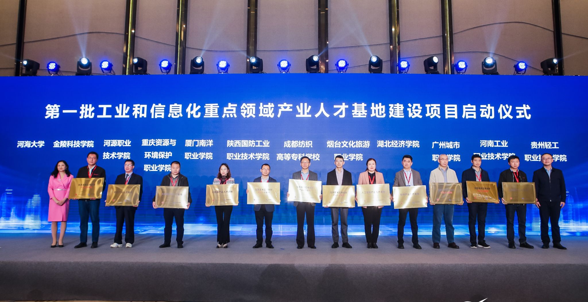 论坛上,工业和信息化部人才交流中心领导为第一批工业和信息化重点领域产业人才基地建设项目院校授牌,并举行项目建设启动仪式。副校长宋超代表学校接牌,并与获批该项目的兄弟院校代表一道参加启动仪式。