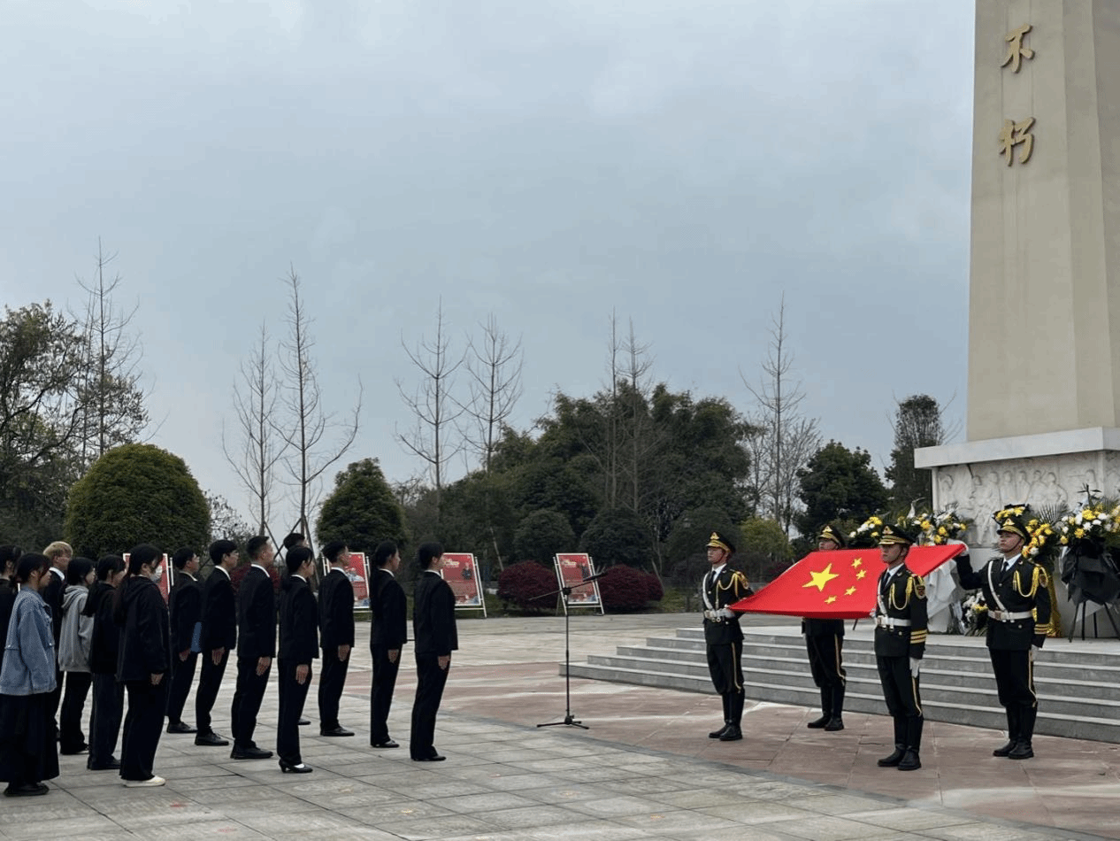 3月28号下午,校团委组织校国旗护卫队和宿舍团小组成员前往郫都区烈士陵园开展“传承红色基因,践行二十大精神”爱国主义主题教育。