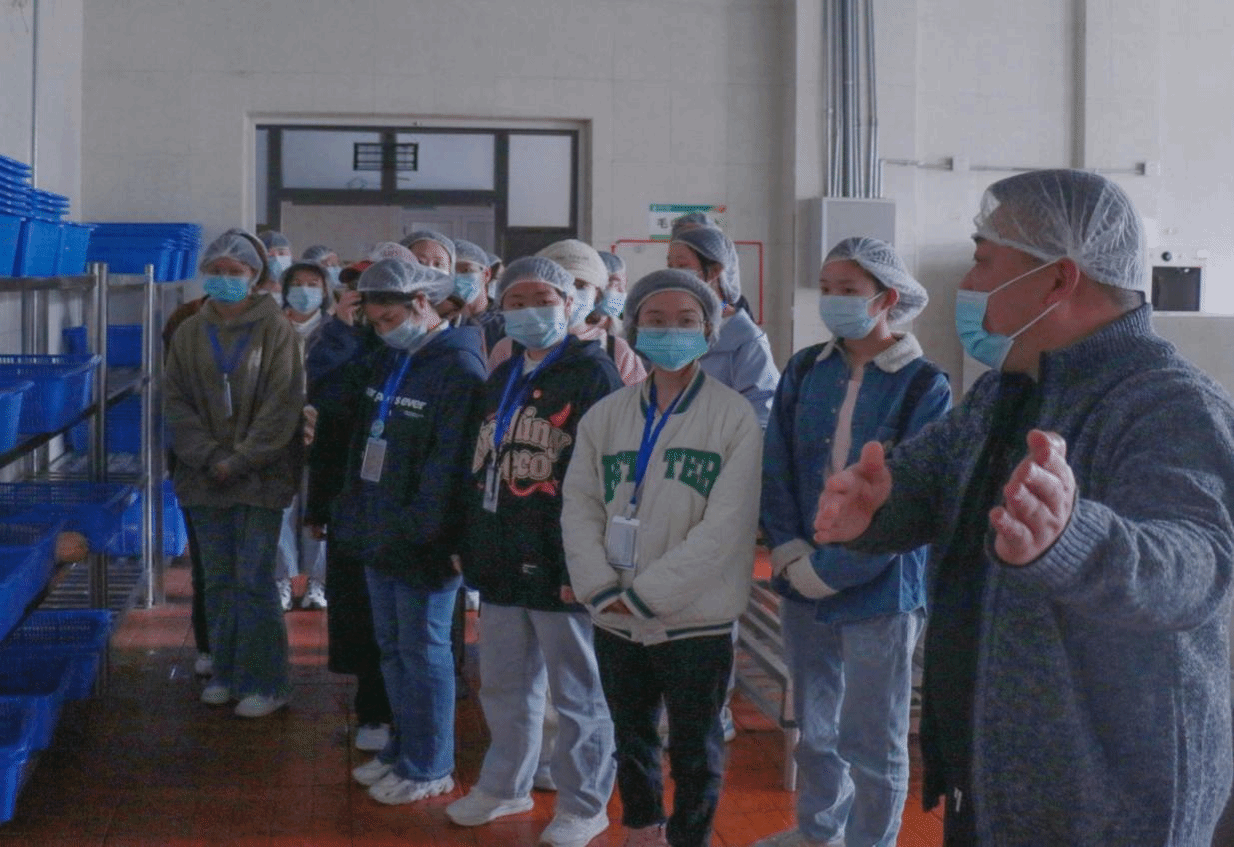 参观队伍严格按照进入食堂后厨的要求,佩戴好头套和口罩,分别进入粗加工间、操作间、留样间、仓库、洗碗间等后厨不同功能区。工作人员向同学们详细介绍食品加工流程、食堂大型设施设备、消防安全设备及功能区设置的目的和意义。