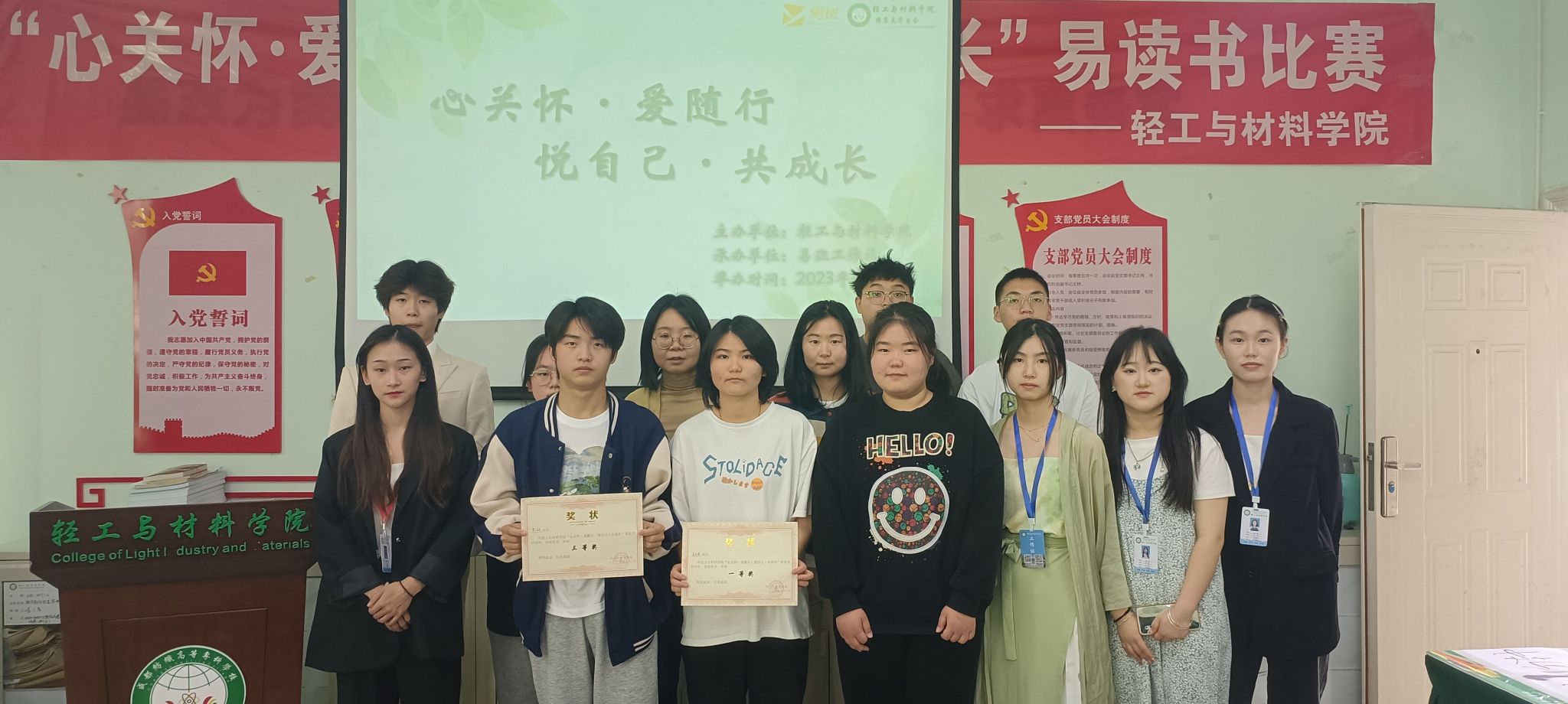 轻工与材料学院于4月11日下午在学院活动室举办了“心关怀·爱随行·悦自己·共成长”主题的“易读书”阅读分享比赛。共有10支队伍参赛,比赛由学院易班工作站主办,高材221班吕志豪同学主持。团总支学生会指导老师李小婉和专职辅导员李欣怡担任比赛评委,部分大一学生观摩。