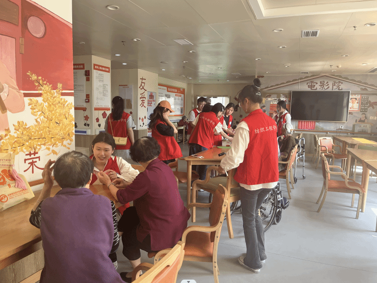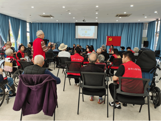 4月15日下午,纺织工程学院教工党支部和学生党支部在成都锦欣九九乐福养老中心开展“志愿纺织,爱驻夕阳”主题敬老、爱老、尊老学雷锋主题志愿服务活动。活动分为两部分,一是师生党员、入党发展对象与养老中心老党员同志召开党员生活会,二是学生入党积极分子与其他非党员老同志开展剪纸和折纸活动。
