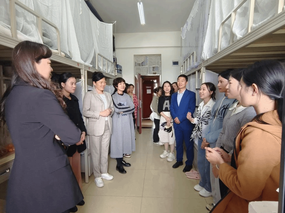 • 4月25日下午,服装学院党总支书记太扎姆、院长李晓岩、副院长吴杰、党总支副书记赵爽,专业负责人李青,辅导员李春红和学生会部分同学一起来到留学生同学寝室,进行“五一”假日节前慰问。活动旨在了解留学生们的基本情况和实际需求,听取留学生的心声,表达学院的关心关爱,帮助留学生尽快适应校园生活和学习。