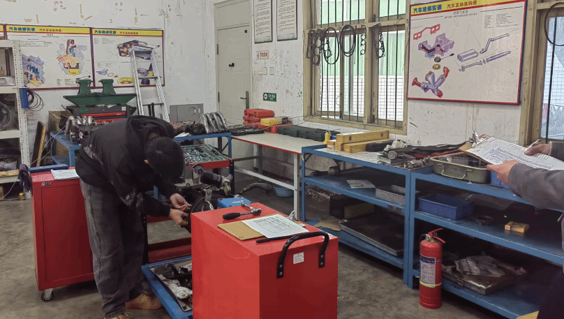4月25日,智造学院在汽修实训室开展“1+X”证书制度汽车专业领域新能源汽车动力驱动电机电池技术(中级)证书试点考试工作。此次试点考试评审小组由成都工业职业技术学院张习泉老师担任督导,雅安职业技术学院覃勇老师担任考评组长,贺仕伟、蔡伟、王普三位老师担任考评员。