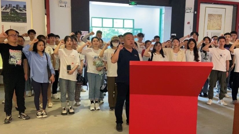 接着,鲜金宏带领党员师生重温入党誓词,党员们面对毛主席雕像,坚定有力地宣誓初心与使命。