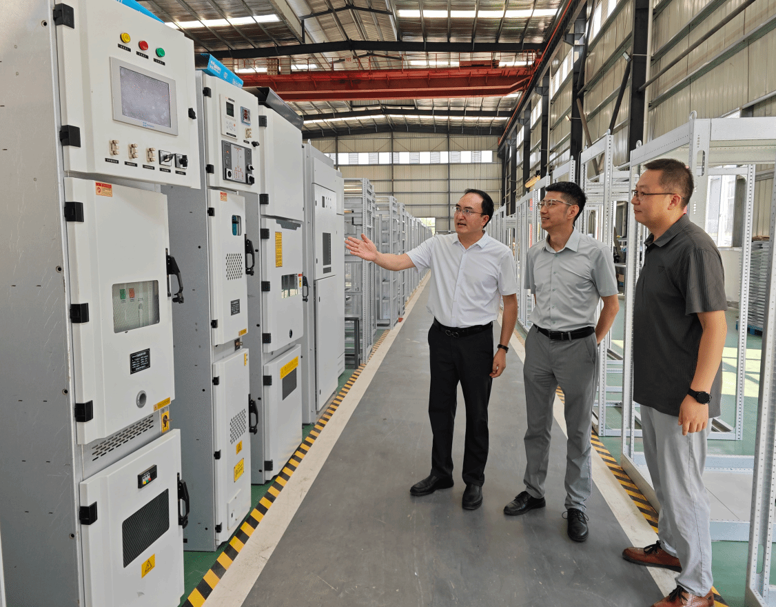 宋超一行在标杆电气董事长胡奎校友等陪同下,参观了公司的生产车间,对公司预装式变电站等产品的生产工艺表示赞赏。