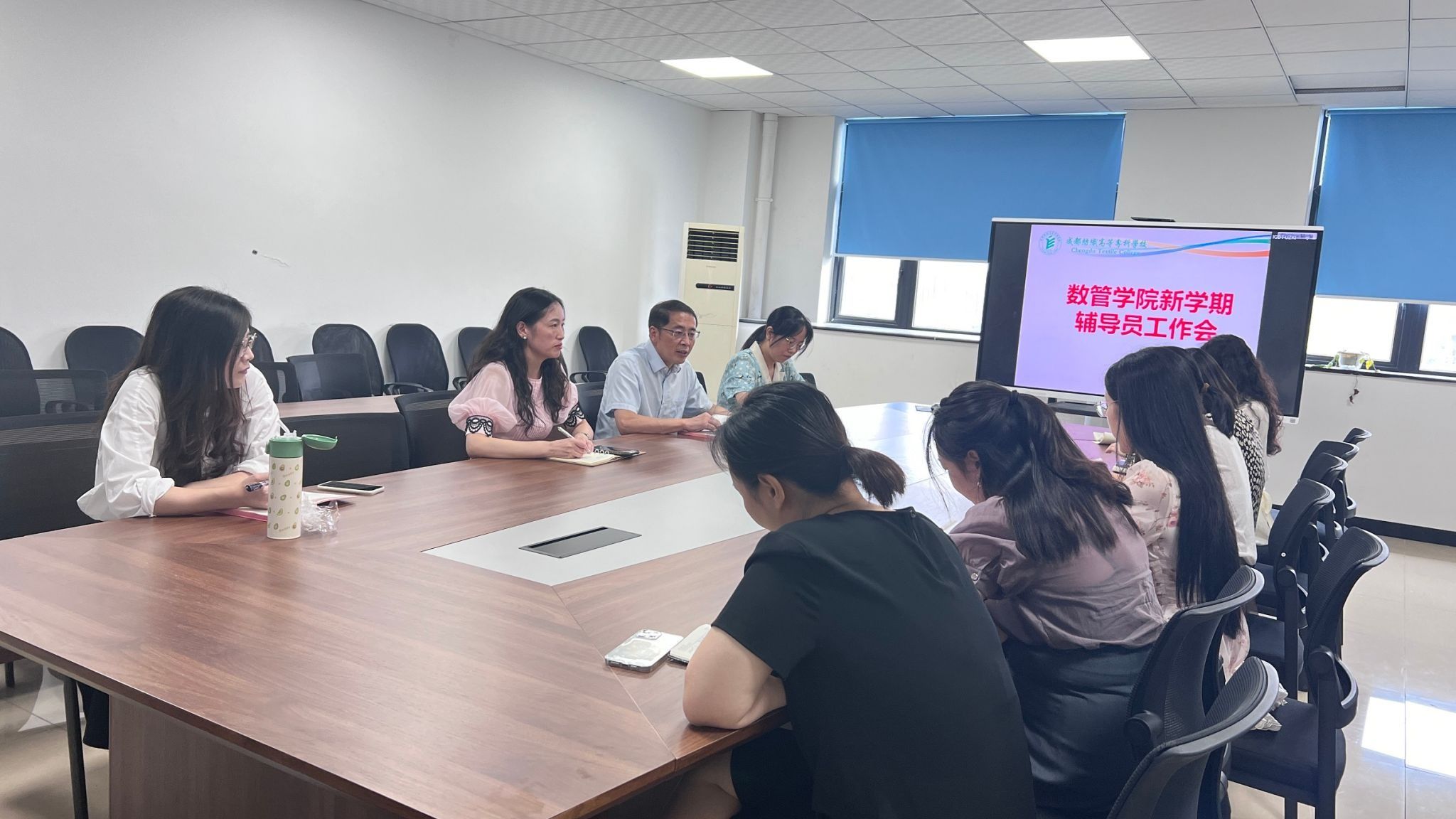 9月9日,数管学院在融创楼A402会议室召开新学期辅导员工作会,学院全体专职辅导员参加,会议由学院党总支书记王霖主持。