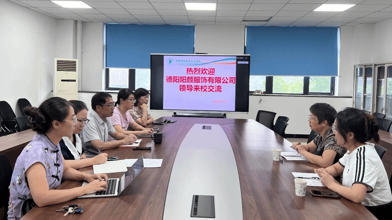 9月12日上午,德阳阳颜服饰有限公司总经理梁秀芬、海外运营总监苏黎来学校商谈校企合作事宜,数管学院党总支书记王霖、办公室主任凌书娟和商贸教研室老师参加交流会。
