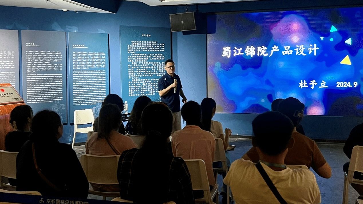 蜀锦织绣博物馆执行馆长杜予立进行了主题为“蜀江锦院产品设计”的分享讲座,分析了产品设计中的价值创造与需求解决,并传授了建立产品和品牌价值的技巧与方法。